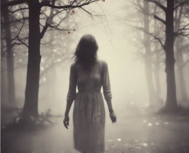 An old Polaroid dissolving into mist, revealing the ghost of the subject walking away — grainy analog softness, dust particles, poetic visual decay.