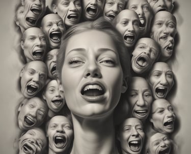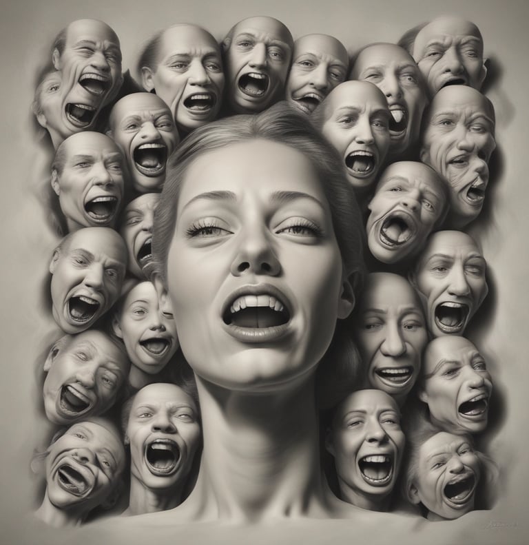 A portrait with mouths duplicated in impossible positions — surreal psychological distortion.